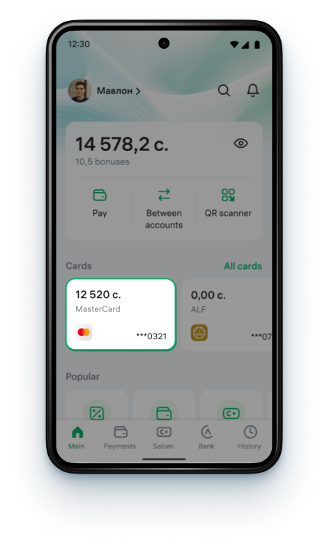 Tap your card on the Alif app main screen