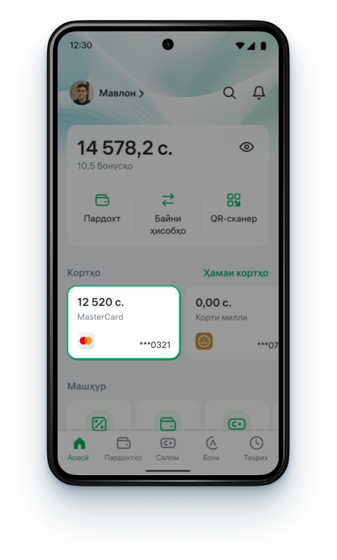 Корти Mastercard-ро дар экрани асосии барномаи Alif пахш кунед